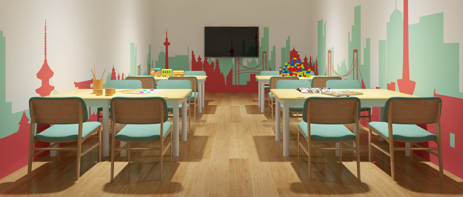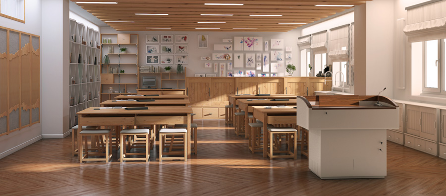 主要配置:課桌、椅子、講臺(tái)、書柜、儲(chǔ)物柜。
