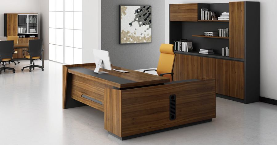 班臺(tái)辦公椅與書柜沙發(fā)的搭配,講究氛圍的營造,在設(shè)計(jì)與選材上力求協(xié)調(diào)統(tǒng)一,厚重的空間感,驟顯氣度不凡。